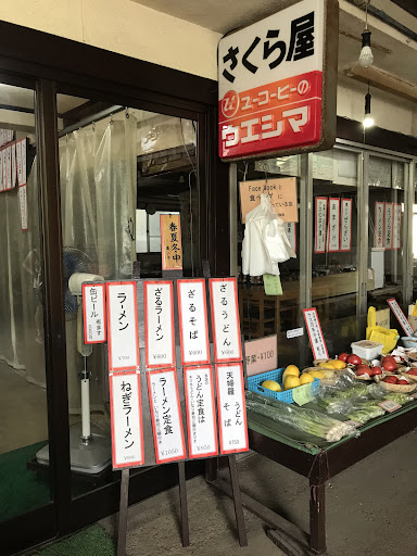 お昼時でしたので参道入口近くのさくら屋さんに入店、間口が広く参道食堂の趣を備えています。店頭では自家製野菜を販売されており値段は格安、参拝の方々が沢山買い求められていました。