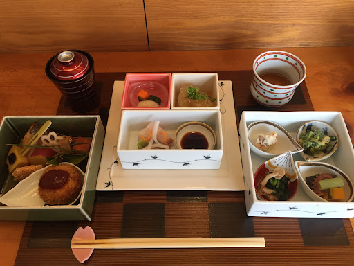 Read more岡山県の有名なお稲荷さんに初詣に出掛けたので、ランチは、その近くで...!って検索して、最終的には口コミで決めました。人気の店だと直ぐに分かったので予約を入れましたよ~(^_^;))) カウンターなら予約を取れます!と言ったので、即答でお願いしました~ 店に着くと駐車場は満杯です!車の前に停めさせてもらいましたが、人気の店にしては駐車場が狭いかもなぁ~ 早速カウンターに案内され、料理待ちです...。筆者の頭の中はまだ正月です(笑)1番高いランチメニューで予約してました~ 食事のペースに合わせて、出される日本料理の数々...前菜から始まり、最後のデザートまで!その料理一つ一つ、また器の一つ一つ、どれをとっても絵になります~ そうそう、スタッフの一人が筆者と同じ郷里出身だったのも何か縁を感じました~ ちなみに筆者は腹ペコでした!もしかしてガツガツと食事したのではないか?と、あとから後悔したけど、まいっか~(笑) わざに足を延ばして行った甲斐がありました。 お腹も心も大満足...