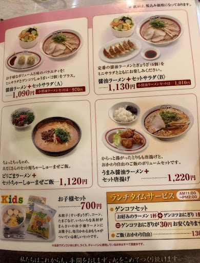 入店の際、赤磐の町苅田店で感じた圧倒的獣臭(豚骨臭)はここでも健在(笑 店内は清潔で明るい印象。 注文したのは『うまみ醤油ラーメン炒飯セット』1,260円。
