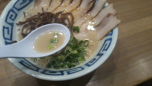 豚骨ラーメンは長浜系だと思うのだけど、塩気の強いスープに極細麺。 スープに関しては他のレビュアーさんも書かれているようにクリーミーというか...。 雑味があまり感じられない代物で、この系統にしては珍しいと思う。