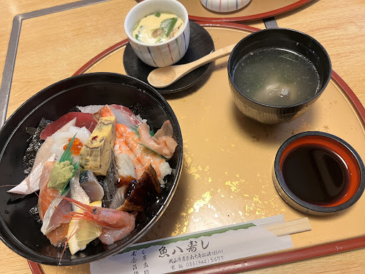 Read more魚八海鮮丼並をお願いいました、店内和食屋さん独特の良い香りと雰囲気おちつきますねぇ〜(´ω`) 15分ちょいで着丼、ネタはカツオ、エビ、サーモン、鯛、漬け、穴子etcネタのサイズは小さいながら盛りだくさんです、シャリの酢も優しい具合で食べ易いですね、吸い物は出汁加減もよく流石の和食店、茶碗蒸しは蒸したてが後から提供されました、今回は魚八定食にしませんでしたが鍋焼きうどんのおいしい季節になったら次は魚八定食かな?ごちそ...
