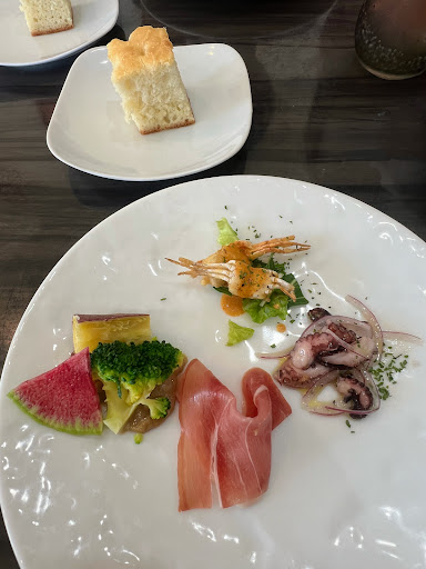 ちょこちょこ入った前菜とフォカッチャが届く。 フォカッチャは食べ放題とのこと。 どれも美味しい(๑´ڡ`๑)