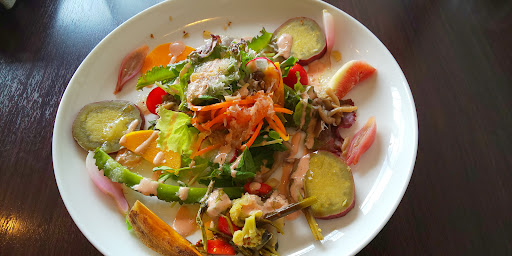 なんてサラダなんだ! こんなに沢山の種類の野菜、根菜もキノコや無花果などの果物さっぱりとしたドレッシングがそれぞれの素材の香りをジャマしなくて良い。
