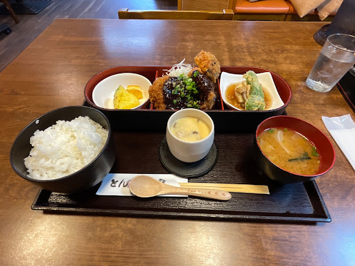子供は一度目は白飯とカツ、 おかわりの二度めは白飯にとろろをかけて食べるのが定番です。 ついている小鉢もその時により変わるのですが、今回もとても美味しかったです。 コロナ対策にもとても気を使われていて安心もできます。 コロナのせいで座敷を改造された?とおもいます。又元の座敷になることを願ってまが、、。