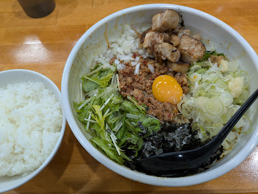 Read more入店すると正面奥に券売機があるので、食券を購入してからお好きなお席に座って、食券をカウンターの上に置いてお待ち下さい。従業員が2人〜3人で順番に対応してくれます。順番が来たらニンニク有り、無し、多め、少なめとか聞かれるのでお好きな量を言って下さい。暫く待つとまぜそばが着丼します。看板まぜそばと台湾まぜそばは追い飯(少量ご飯)付きです。塩台湾まぜそばとカレー台湾まぜそばは追い飯はありません。ご飯が欲しい人は券売機で購入して下さい。麺の量も大盛りは+100円、特盛は+200円です。各種トッピングも欲しい人は券売機で購入して下さい。カレー台湾まぜそばを購入しました。カレーと魚粉等の台湾ミンチが風味良かったです。なかなか美味いです。 駐車場が無いので東岡崎駅南口のSWINGMALLの立体駐車場か、東岡崎駅南駐車場の立体駐車場等を利用して下さい。駐車料...