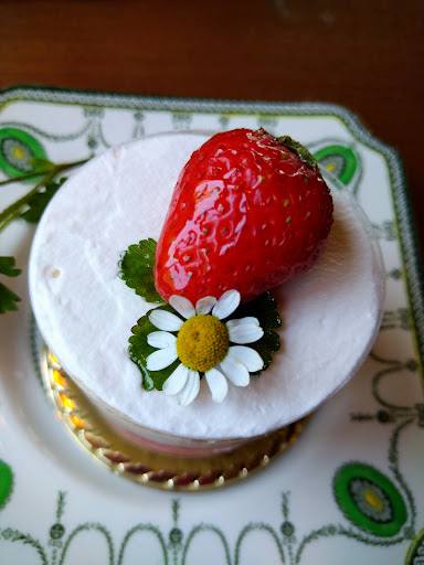 甘い苺スイーツに緑茶ベースの 紅茶が美味しかった♡