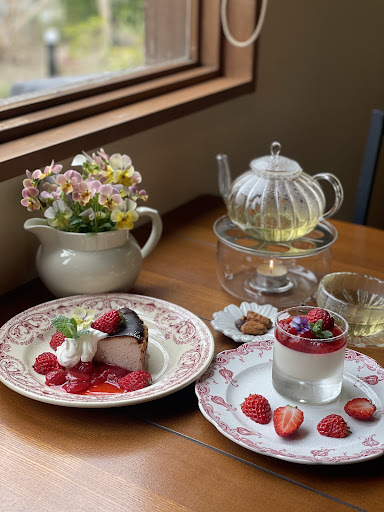◽︎ バスクチーズケーキ 苺 ◽︎ パンナコツタ ◽︎ Tea SAKURA SAKURA