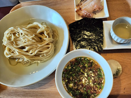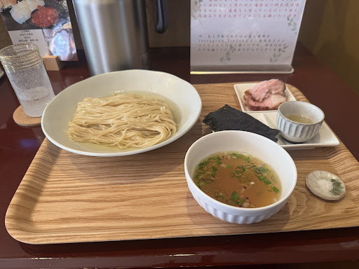 Read moreメニューが昆布水のつけ麺オンリー。塩味と醤油の二択、トッピング類での差別化。こだわりの一杯らしい。今迄に、色々なお店で「昆布水のつけ麺」を食べて来ました。某、超有名店でも頂きました。特徴を出したかったのかなぁ〜?お味が「淡いです」と、強調されてました。昆布水も薄ぅ〜い、僕の味覚、味蕾の精度を試されてるかのよう!!付属のお塩を付けて麺を頂くと旨いです。お塩が!!つけ汁も、そのまま飲める程に塩味出汁感淡いです。小さな器に少ないつけ汁。直ぐに昆布水にて薄まり、より淡くなるぅ〜(T_T)もっと多めのつけ汁とか、何ならもっと多めのお塩で麺を喰わせるとか、工夫が欲しかったです。こだわりが自己満足のモヤモヤが残る一杯でした。決して不味い訳では有りません。化ける伸び代は感じさせて貰いました。 、 、 、 、 、 、 、 様に思いましたが、勘違いだった様です。ジンライダーとか名前まで違がえられて相当怒らせてしまったみたいで申し訳ございませんでしたm(__)m 昆布水のつけ麺元祖の某有名店のレジェンド様が横浜ラーメン博物館に九月二十五日に出店されます✨一度御賞味してくださると当方の思いの一部でも理解って頂けるかもと思...