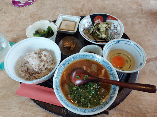 Read more前から気になってたのでお友だちとランチしてきました! コロナ対策がキッチリしてて安心。広いお席に2人で座らせていただけました。 メニューもですが、インテリアも素敵で、店主さんが拘ってるなぁという感じでとても好印象でした。 ただちょっと椅子が高くて座高の高い私には合わない気がしましたが…。 ランチどれも美味しそうで食材にも拘ってて迷いましたが、私は豚汁さんランチをいただきました!お米が十穀米に選べます。拘りの食材を使った具だくさんな豚汁が最っ高。 ご飯をプラス100円でたまごかけご飯にしたらビックリするほど美味しかった。 お代わりしたいくらい。 たまごかけご飯のお醤油も、普通かだし醤油か選べます。魅力的な小鉢もどれも美味しい!健康的で美味しいランチをゆっくりと味わっていただけました!お腹いっぱいです。お客さんどなたもとてもゆっくりされてて、居心地が良かったです。 ケーキも魅力的でしたので、また次はお茶しに行きたいです!帰り際に、物価高騰のため次くる時は、どれも値上がってるとのことでしたが、とても気に入ったのでまた行きたいです★ お店の方もすごーく感じ...