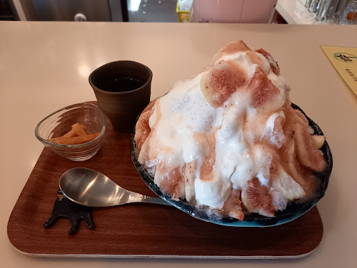 Read more初めての来訪でカフェオレ氷を、2度目に無花果氷をいただきました。 カフェオレ氷は絶品!夢中で食べてしまいました。コーヒーゼリーや途中で追いがけできる無糖のコーヒーが添えられているので、最後まで飽きることなく食べられます。 しかし無花果氷は…常温の果実をかなり時間をかけて丁寧に飾りつけておられるためか、食べ始めた時には既に大半の氷が溶けていました。溶けた氷とエスプーマの相性は悪く(水と油ですからね)中盤からは濁ったまずい水を飲む状態で悲しくて虚無でした。これで1600円はない…。次回来訪時は果物が乗ったものは絶対にやめます。カフェオレ氷に感動して身内を誘って行っただけに落胆と申し訳なさでいっぱいでした…。