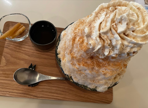 2021年追記 ピスタチオミルクを注文 名前に偽りなく、濃厚なピスタチオクリームと優しい甘さのミルクのかき氷。 クリームの上に荒く砕かれたローストピスタチオがかかっていて、それが食べているときのアクセントとなっている。 中にはチョコアイスが隠れている。 え?チョコ?と思ったがピスタチオとの相性はよく更に美味しい。 何度でも食べたくなる味。