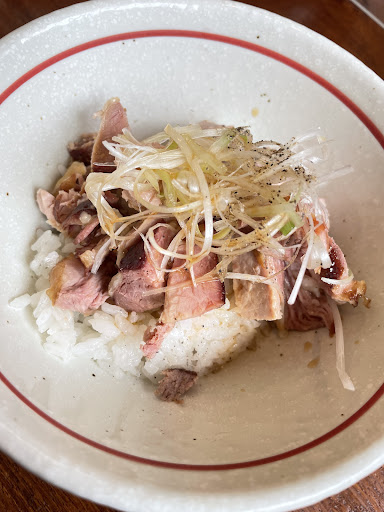 チャーシュー丼は肉量多めで食べ応え充分 タレと胡椒で味付けがシッカリしているので、醤油らぁめんとのマッチングは良好だった