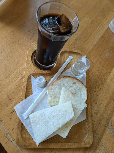 久しぶりの訪問。休日の土曜日。 相変わらず常連さんが多く、皆さんくつろいでます。 アイスコーヒーにモーニング付けて食べていると 11時になり、どなたかが日替わりランチを頼んだので、ついでになだれ込みランチ注文をする。 トンカツです。デザートの珈琲ゼリーまで付いてくる。これにアイスコーヒー付けて¥850。 ランチだけでなく、食事のメニューは、セットドリンク足しても最高額が¥950。 20年前から刻が止まったかのような価格設定。 マスター、ママさん共にご自愛ください。そして、 末長くこの碧の喫茶店が続きますように。 ーーーーーーーーーーーーーーーーーーーーーーー 昭和59年創業今年で38年目です。 時代がひと回りして、また追いついて来た80年代のカフェバー文化と個人喫茶店隆盛のこだわった内外装が特徴です。 というか、これはもう喫茶店文化遺産ではないでしょうか。 メニューも確かなものです。堅実な喫茶店です。