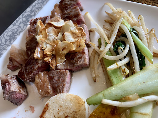 Read moreランチで会社の人達と伺いました。サラダ 、次に前菜のホタテとキノコの炒め物、焼き豆腐と頂きましたが、目の前の鉄板で 焼いて 5人に 分ける時 めっちゃ 適当な分け方でした。一度盛り付けた人の皿から 他の人に移したり 、見ているだけにちょっとびっくり!極めつけは 肉の焼き方を確認した後 盛り付けで間違えたら 、他の人の皿から 私の皿に 肉をそのまま 移したことです。皿はすでに 前菜等で かなり汚れてる状態です。人の食べかけの汚れた皿から 、他の人の皿に お肉を 平気で 移す 神経が 唖然❗状態でした。会社の同僚なので 我慢しましたが、あり得ないことだと思います。衛生上も あまり 好ましくない...