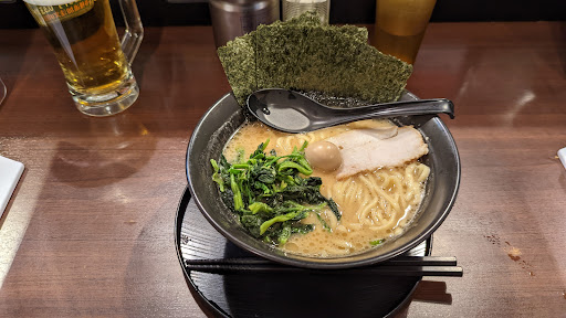 出張先にて、ふとラーメンが食べたくなり、近辺のラーメンを検索。 すると、ユーチューバーの東海オンエアが一押しと言う家系ラーメンを発見。 暗くなった時間帯に到着すると、8組くらいのお客さんが並んでいた。 否応でも期待が高まる。 順番が来て、入口の食券の購入を案内され、店内に入る。 店内はそれなりに清潔感があり、店員さんの接客も丁寧で好印象。カウンター席に座り、豚骨醤油ラーメンの食券を渡しました。