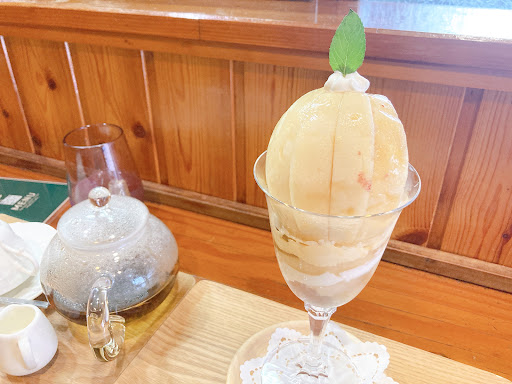 Read moreずっと気になってたお店。 ログハウス風の親しみやすい店内、気さくで溌剌としたお店の女性。 常連さんが多いようだったが、アウェーに感じるよりむしろ、こんなお店が近くにあるといいな、こんな関係性素敵だな、と思えた。店員さんの感じの良さのせいかな。 メニューはQRコードを読んでアクセスする今どきの感じ。 桃パフェ全体は小ぶりながらも、桃はしっかりと甘く、アイスもクリーム感が強くて負けてない。中に入っているジュレなども多彩な食感や味を楽しめた。紅茶も初めて飲むメープル味でとても美味しく、ついブランドを検索してしまった。 帰りがけには「ゆっくりできましたか?」と気にしてくださり、また足を運びたくなった。今度は...