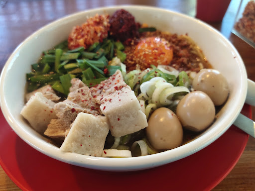 台湾ラーメン辛さマシ3¥900 あっさりしょっぱくないスープに香りのいい加水低めの麺、唐辛子ニンニクと唐辛子ミンチとなんやかんやで汗かいて逆に痩せる?!wあっさりめミンチがたっぷり載って高級ニンニクががツンとくる具材たっぷりラーメン!途中で追い飯に穴あきレンゲですくった具をのせて花山椒がオススメ! 台湾油そば甘口¥950 たっっぷり具材にもちっと太麺を混ぜてガッツリ喰らえ!途中で卓上のてりやきマヨはマスト。追い飯に激辛食べられない辣油をほんの少し混ぜて。しっかりしてるのにあぶらっこくないから安心してビールにしよう🍺