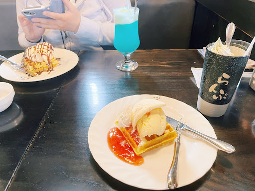 ワッフルはかかっているストロベリーが甘めですがアイス(量が想像より多め!)と食べると丁度いいです 焼きたてなので、ホクホクしてて美味しい・・・