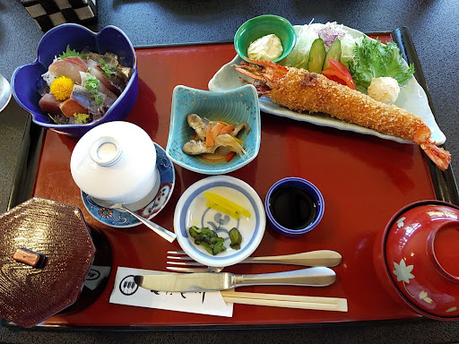 Read more親戚との食事会で来訪。お店の雰囲気は昔ながらのたたずまいですが店内は思っていたより整理整頓されていて綺麗でした。案内された広間は和室でしたがテーブルと椅子も有りお年寄りや足腰の悪い方でも楽に食事が出来ると思います。 大海老フライ定食が推しとのこと。 確かにサイズはかなり大きいです。大海老フライと刺身がセットですが刺身を大海老フライに変更も出来るようで大海老フライ2本の定食はボリューム感が有りますね。味はしっかり海老の味がして特にエビミソが美味でした。刺身も大変美味しくて青物が美味でした。また、平日ランチもやっている様...