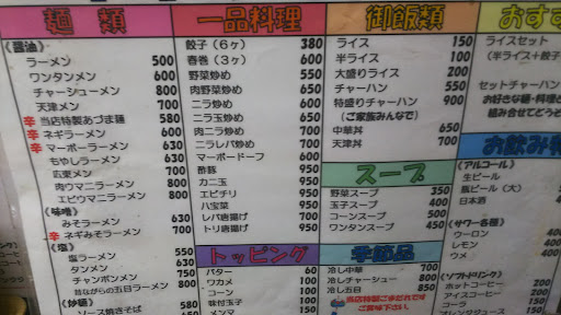 閉店後の店の裏を歩いてよく通る。 通る度に中華って感じのいい匂いが。 お店はやってないので入ったことがなかったんだけど、祝日の月曜日に初めての入店。 メニューに大盛の設定は無く、半チャーハン+300円とかっぽい。言えばやってくれるのかもしれないが。 麻婆ラーメン680円に半チャーハン+餃子3個のセット+500円と相方があづま麺650円とやらを注文。 ワンオペで店を回しているらしく、空いた皿の回収も追いついてないらしい。 20分位待ったか? エアコンが効きすぎなくらいで、体がだいぶ冷えた頃、麻婆ラーメン到着。 見た目麻婆ラーメンだが、なぜか麻婆の下には野菜餡掛けっぽいものが。 しかも豚肉、白菜、椎茸、人参、筍、マッシュルーム等、必要かどうかはともかくやけに具沢山。 こりゃ、680円のワリに手間と経費かかってんな~とか思いながら、まぁ、普通に旨い。 そして、チャーハン。 なんか、自分で作れそう!ってのが感想。 餃子はニンニクたっぷりで、中々旨い。 あずま麺は、醤油ベースのタンメン的見た目だったな。 まぁ、町中華的位置づけで、コレはコレで...