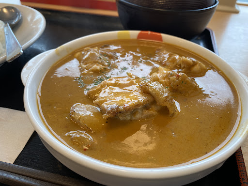 ルウはココナッツミルク風味で口に運んだ瞬間は甘口のお味がします。 食べ進めると隠された辛味スパイスが体に効いてきて、自然と頬に額に汗がつたいます。