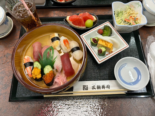 Read moreこの度はお婆ちゃんのお誕生日会で使わせていただきました。予約から相談までとても親切にのっていただけて三朝寿司さんで開催できて本当に良かったです。お料理もどれも美味しくイカと茶碗蒸しが大好きなお婆ちゃんはとても嬉しそうでした^^ 20名ぐらいで座ってお食事ができました。席の周りに動きやすいほどの余裕のスペースはないですが移動は全然できます!ケーキの持ち込みもご相談させていただき、¥500お支払いしたら持ち込み可能でした。包丁やお皿も貸して頂けてご親切でした。少し時間が過ぎてしまったのにも関わらず帰りに笑顔で皆さん送ってくださいました。☆4にした理由はワンドリンク制だったのですが、よく理解しておらず、人数が多かったので最初の乾杯をウーロン茶で統一で良いですか?と聞かれたので統一してしまったことです!オーダー表があったのでそれを使ってしっかりここに好きなものを記入して渡せば良かったなぁと思ったからです。それ以外は、本当にお店の方もご多忙なのにご親切にしてくださいました。誕生日会が無事成功したのも三朝寿司さんのお陰です!有難...