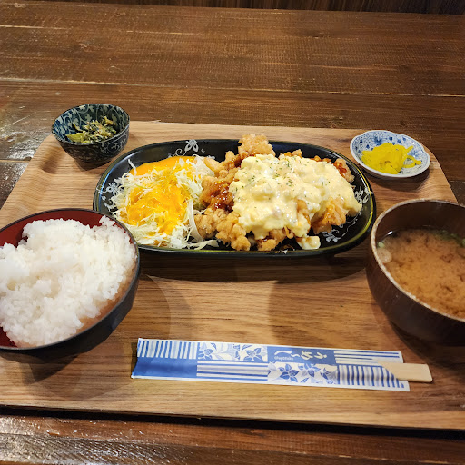 マップで見てるとチキン南蛮のボリュームが凄いとのクチコミ多数で訪問。 2枚830と1枚680がありましたが、初回様子見ということで1枚定食を注文。食券制ですね。店の前にメニュー貼ってますので決めた上で入店されることをオススメします。 食券を買ったらお姉さんに提出して席に案内される…かと思いきや特に案内されなかったので空いてる席ご自由にどうぞということなのでしょうが、、当方初訪問だったので空いてる席を探すのにも一苦労。壁が高くてパッと見で空いてる席がわからないのよ。 肝心のお食事ですが、やや長めの待ち時間で運ばれてきました。小鉢とお漬物、お味噌汁がついてきます。南蛮は噂にたがわぬ大きさ!こんなの2枚も出てきたら食べ切れる自信ありません笑。現に隣の席に座ってたお姉さんはパック貰って詰めてました。 しかし、40パーセントくらいは衣でかさ増しされてた感覚ですかね😅両端の2切れはほぼ衣でした笑 まぁそれを差っ引いてもコスパはいい方かと思います。味はかけてあるタルタル含めおいしかったです。千切りキャベツにも景気よくドレッシングかけてくれてました。 ごはんはおかわりできるのかな?そのへんよく分かりませんでしたが2枚定食だと明らかにご飯とのバランス崩れるので注文される方は熟慮...