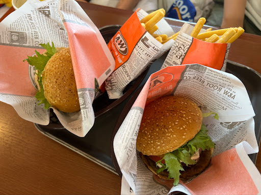 Read more오키나와 햄버거는 A&W 라고 해서 아침으로 먹기 위해서 방문했어요. 오키나와의 대부분 식당처럼 주차장은 아주 넓고 드라이브스루 서비스까지 가능한 매장이었어요. 24시간 영업이라 편한 시간 어느 때 가도 되더라구요 😁 매장 내에 일본어 메뉴판이 있는데 한국어 지원은 안됩니다. 안되는 일본어 단어를 동원해서 주문했는데 아주 찰떡같이 알아들어 주셔서 주문을 잘했습니다. A&W버거와 모짜버거, 감자튀김, 버터비어, 콜라를 주문했는데 버거는 느끼하지 않고 맛있었어요. 감자튀김은 살짝 눅눅한 듯 담백했고 버터비어는 음... 맨소레담 연고와 맥콜 향이 살짝 나지만 먹을만 했어요. 역시 햄버거와 감자튀김에는 오리지널 콜라죠 🤣 매장 분위기는 따뜻하고 포근한 동네 햄버거 가게 느낌이었어요. 책도 읽고 공부도 하고 왔답니다. 오키나와 여행하신다면 A&W버거 자주 보게 되실텐데 한 번쯤 들러보세요 🍔🥤🥃 입구에 경사로 있고 자동문입니다. 실내 공간도 넉넉해서 휠체어, 유모차 타고 이용하기에 참 좋아요 화장실은...