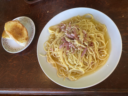 I was surprised! Most expensive meal was the Large size spaghettini (800¥), which each came with two pieces of deliciousLu buttered bread. The chicken teriyaki and chicken Stanley were each (750 ¥), which came with a small and delicious soup and white rice. The fried rice was equally as delicious as all the other meals and inexpensive. Five people fed for 3,800¥ is a win. The two people that own the place and served us were absolutely...