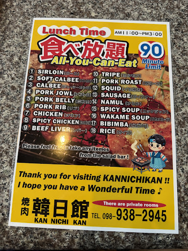 Read moreFantastic kind of hidden Korean yakiniku joint in Awase (right across the Sam’s by the Sea). Delicious food (especially the self-service side dishes), nice service ladies working, and a very decent price for AYCE lunch. Bonus star for them finally bringing the sausages back on the menu (I missed them when I...