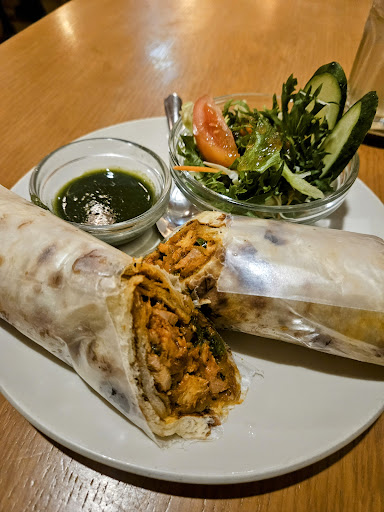 The chicken naan roll dipped in their green sauce was one of the best things I've had from an Indian restaurant. Unfortunately, the butter chicken curry and garlic cheese naan wasn't on the same level.