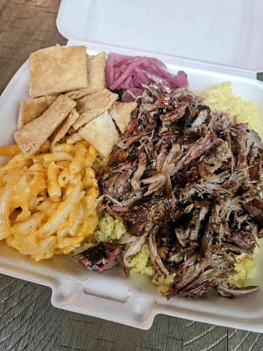 Ordered take out to serve for a group of 5; the food was PHENOMENAL!!! We got the pulled pork over rice and 2 lbs of bbq ribs. Everything was very delicious!! The meat was tender and juicy, and the bbq sauce that came with it was also very good!! This was my first time having their food and I'm happy to say I will be a returning customer! The staff is also very friendly...