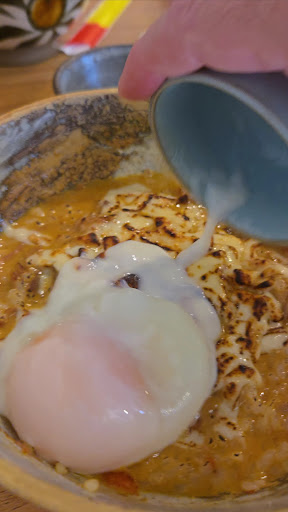 The curry soba set was absolutely outstanding—truly a unique and memorable experience. After finishing the noodles, you're in for a treat: add rice to the remaining curry broth, sprinkle cheese on top, and the staff will come over with a blowtorch to sear the cheese to perfection. Then add a poached egg. Mix it all together, and you’ve got yourself a rich, flavorful risotto. It’s next-level delicious—you’ve...