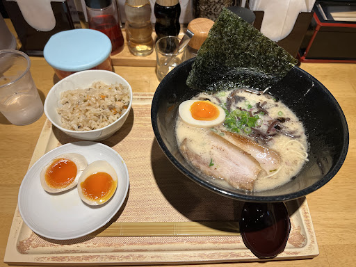 Read moreThis restaurant is wonderful with great tasting broths and some of the best Gyoza I've had. Nice rich ramen, with tender pieces of pork and boiled eggs cooked perfectly. Be prepared to bring Yen because the ordering process is off a ticketing machine that only takes 1,000 Yen bills. They do have a bill machine to break anything over that, though. The atmosphere is relaxed, and the lighting is slightly dim, which adds to the chill ambiance. The price is great. Expect to spend a max of 2,000 Yen on a hungry day. They are English friendly with a placard that goes over the ticketing machine to translate the options. Overall, I'd highly recommend it! Thank...