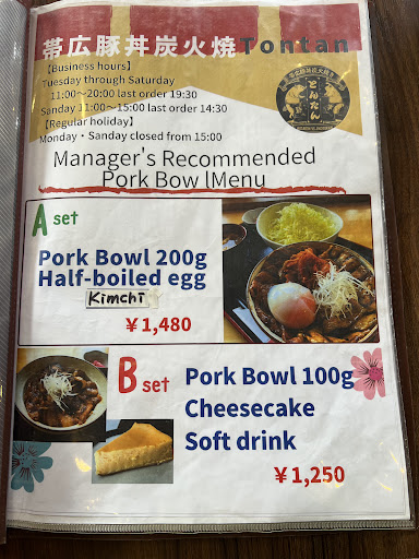 Their specialty is focusing on pork dishes, but primarily Butadon / Pork Bowls. Their pork is high quality and is served either from the Pork Belly or the Pork Shoulder. The meat is charcoal grilled and very tender and juicy. Their sauce is exceptionally delicious—thick, sweet, with a hint of tanginess behind it! Extra sauce is provided at each table, and is delicious to add to the rice or slather more on the pork if that’s your style! It’s excellently sauced and proportioned as is. You can get different sizes of rice and meat to match your appetite—I find 200g to be plenty for a great lunch.