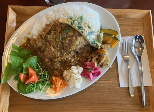 Nice place to eat and relax. Had the sazae curry for lunch which was great and good portion size. More modern setting with large coffee and alcohol...