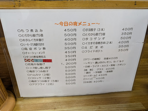 仕事で興部に来て20時過ぎに空いてる飲食店を探して行きました。 昔風な醤油ラーメン!!とんかつをトッピングさっぱりしてて大好きな味、旦那は味噌󠄀これまた美味♥ ラーメン注文後に夜は居酒屋メニューがあることを知り イカの沖漬け、モツ煮込みを追加注文 これがまた安くて美味しくてお腹パンパンなのに食べました😍😍😍 イカの沖漬け写真掲載なかったとは知らず……写真撮れば良かったなぁ〜〜 店主ご夫妻も気さくな感じで話しやすくて最高😍 また仕事でこちらに来たら...