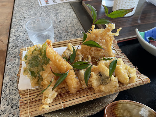 近くに在住の友達に勧められランチに伺いました、開店は11:00と有ったがテイクアウトの都合で11:30に開店との事でした、開店時間の変更はたまに有るみたいで、土日祝は予約して伺うのが宜しいかと思います。 人気店なので開店即満席に成りますからね。 オーダーは入店時のメニュー板から選ぶシステムで定食プラス+200円で刺身が付いて来ます、本日は鯛の刺身5切れでした、私の場合はA定食プラスの設定でした。 ご飯大盛は無料です、本日の天麩羅はズッキーニ、人参、茄子、大葉、えのき茸、イカゲソ1に身が2杯とサイズ的に21~25のエビ2と箸休めの酢蓮根が有りボリューム満点です、本日の刺身は200円プラスで鯛の刺身 でしたがコスパ良いねぇ。 多少鯛のウロコ有ったがお愛嬌。 着席から配膳の多少の待ち時間が有るけどコスパ良いから私の場合は許容範囲、ホールスタッフはそこそこ居るが、調理から配膳の時間がそこそこかかるから調理人は1人だろうね、しかしコスパ良いから私の場合は...