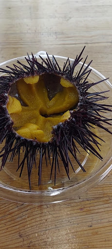 2024年4月30日にお伺いしました。 数年前にも1度伺っており、その際は店先にて生ウニをいただき、美味しかった記憶があります。 今回も店先にて、生ウニをいただきました。 大と小の2サイズあり、それぞれ800円、500円です。 数年前から値上げされていないことにビックリし、小サイズを1ついただきました。 やはり美味しいです。ウニのトゲトゲが動いていてほんとに新鮮そのものです。味も濃厚で、ミョウバン、アルコール臭さがなく、ほのかに甘さがフワッとくる感じでした。 食べ終わったあともトゲトゲは動いていました笑 また、今回はお土産にマグロを購入させていただきました。 切り落とし×2パックと、ネギトロ、漬けの4パックで4000円です。 (送料込みです) 考え方の違いもありますが、他のお店で柵を購入すると、赤身でさえ数千円くらいです。 切り落としには大トロも何切れか入っているとのことでした。 また、バラでも購入可能ということで、大間のマグロをお土産にと思いネギトロと、漬けを別で購入しました。 ちなみに、マグロの旬は秋なので、この時期に行っても冷凍しかありません。 また、冷凍生ウニのビン詰めもおすすめされたので、即購入です笑