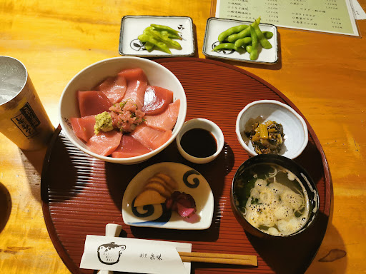 Read more鶏塩焼き定食を注文した。 鶏もも肉を丸ごと一切れ使用しており、パリッとした食感の皮としっとりした肉を堪能することができた。 塩味が効いてきたので、ご飯が進み、女将におかわりをお願いしたところ、快く了承してくれた。 また、当方が学生だったためか、マグロのトロと赤身の刺身をサービスしてくれた。 正直すでにお腹いっぱいになっていたので食べ切れるか不安だったが、マグロは臭みがなく、特にトロは舌の上でとろけるほど脂が乗っていたにも関わらずさっぱりとしており、すんなりと胃が受け入れてくれた。