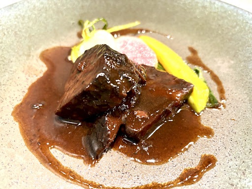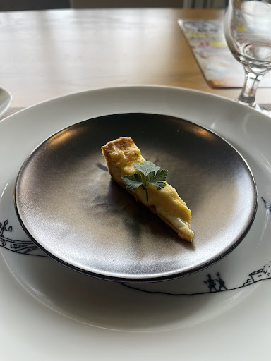 着席した場所はテーブル席。 前回もランチにお邪魔して、今回も。 あの味と感動を思い出しながらの入店。 今回も常念コース。 いやー、美味しい。ビジュアルもいいし、味も美味しいし、いつも一捻りある一品です。 ここ大町でこのようなクオリティの高い料理は嬉しい☺️都内で食べれば8000円は超えてきそうだが5000円でお釣りがくるなんて。 さて、アミューズにビタミンちくわのキッシュ。 長野県民に愛され、しかし製造は石川県♪アブラツノザメを使ったちくわです。ビタミンA.Dが多く含まれて、ビタミンちくわと呼ぶのです。 前菜の鰤の燻製も美味しいが紅芯大根のムースが上品で美味しい。 季節野菜のスープはほうれん草のスープで味に奥行きがありずーっと飲み続けてしまう。 魚料理はオオニベのポワレ。ソースがりんごを使っていて甘みとコクがありすごく美味しい。感動をありがとう。 肉料理は牛ホホ肉の赤ワイン煮込み。とろとろのお肉にソースも絶品。付け合わせのお野菜がすごく美味しい。 食後のデザートも上品で美味しい。堪能させていただきました。 ちなみに店名のクレットとは、フランス語で山の稜線を意味してるそうな。まさに北アルプスの雄大な山々ですね。