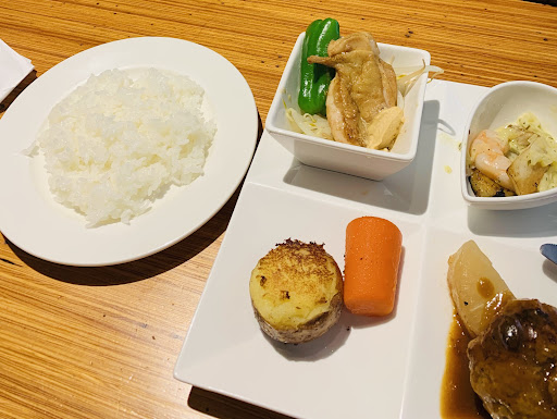 Read more皆さん柔かに迎えてくださり、アラカルトのプレートも全て美味しいです。鳥のバターソテーは柔らかく、ハンバーグもふわふわでソースも全て手がこんでいます。エビのマリネはジェノバ風です。ジャガイモはふかし芋の上にマッシュポテトが被せてあり、焼かれていて、食感が違うのでまろやかです。 次回はカウンターで、ステーキディナーをいただくつもりです。野菜はフレッシュです。夢咲牛は、とても...