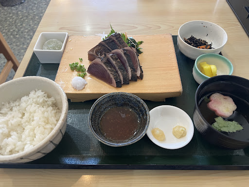 PS.シーステーキとの事でカツオのステーキを販売始めた?これから始める?らしく、それの試食を食事の初めに頂きました。 これもかつおで両面を焼き専用ソースがかかっておりましたが、ちょっと生臭さも感じ...