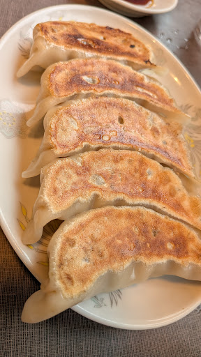 最後の締めくくりとして、大ぶりの餃子をいただきました。一皿に五個入り、餡はにんにく風味がほど良く効いており、もっちもちの生地とカリッと焼き上げた表面が絶妙な食感を演出。これぞ至高の逸品!