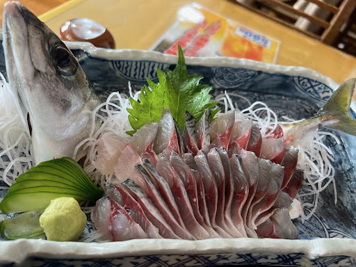 鯖はまだ生きているようで、時々尻尾が動く。 ごめんねと思いつつ、、 鯖の活き作りは大好物💖 コリコリして最高✨