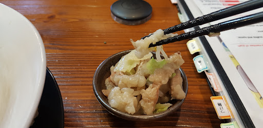 Straff was friendly, but the Ramen soup didn't taste good. I ordered a dish with chicken, but the meat was all fatty (shown in the picture). My companion and I didn't...