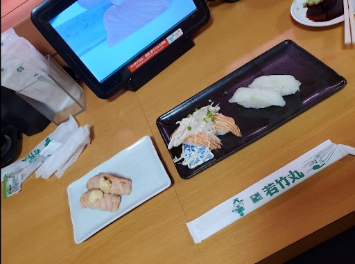 Read more駐車場がちょっと狭い(とはいえ、座席数を考慮すると十分な数はとめられるのですが)ので、18時以降は座席待ちの前に駐車場空き待ちになってきます。 プチクレーンゲームが置いてあり、待ち時間に遊んでいる人もいますね。水も飲めます。 若竹丸の握りは職人がちゃんと握っているので普通の回転寿司とは違いますよね。さび入り・抜きもいまだに選べますよ。 数年前から回転レーンは取っ払って完全オーダー制になっていますので、注文した数=食べた数になります。何をどれだけ食べたかがタブレット端末で見られるので、カロリーを気にしながら食べている人は分かりやすくていいかもですね。 また、仕入れによってその日のオススメネタがあるのでそれも要チェックです。 手作りと書いてあるソフトクリームが絶品です(ただ、店内のデジタルサイネージでソフトクリーム大手の日世のキャラクター、ニックンとセイチャンが登場していたので、どこまで手作りなのかは謎なのですが)。少し高いですが是非食べてみてください。2022年4月に久しぶりに行ってみたら、ほうじ茶ソフトクリームができてました。甘さがかなり抑えられていて、ほうじ茶の苦味が絶妙でおいしかったです。手作りのあんこが乗ったソフト...