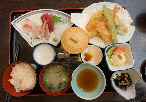 土曜日の11時10分位に着いたのですが、店舗横の駐車場2台と裏の4台停めれる駐車場は満車。 少し歩けば市役所の有料駐車場に停める事が出来ます。 12時前には満席で、並んでました。 店舗の無料駐車場に停めよと考えるのでした、開店前の20分前位には停めてた方が良いかもしれません。 店舗裏の駐車場も狭いので軽自動車の方が駐車しやすいかもしれません。 大型車だと出し入れが大変かも。 座席に案内されてタッチパネルで性別と人数を入手してたから食べたい料理をタッチパネルで注文するスタイルです。 食べたのはサービス定食です。 税込み1200円です。 ボリュームもあります。男性だとご飯の量が少ないので大盛りにした方が良いかも。 刺身は食感もあり、新しいと思います。 マグロの赤身は冷凍物みたいでした。 天麩羅はイマイチかな。 貝汁は貝の出しが出ていて美味しかったです。 茶碗蒸しは普通かな。