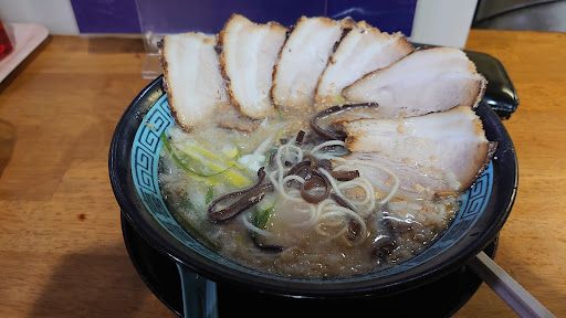 Read more以前大牟田駅付近にあった頃によく通ってました。 チャーシュー麺に背脂トッピングと1人前の炒飯を注文。 まずラーメン、スープはとろみがありつつも口当たりはあっさりというよりもスッキリ?動物系の匂いは控えめなので物足りないと思う人もいるかもしれません。良く言えばクセの無いスープ。ネギはやや固めの香りの強いジャキジャキ食感。個人的には好みだった。麺は普通だと柔らかめに感じたので替え玉で固めを追加注文。丁度よい。チャーシューは冷たかったけど脂身が甘くて美味しい。この辺は以前と変わらずで良かった。