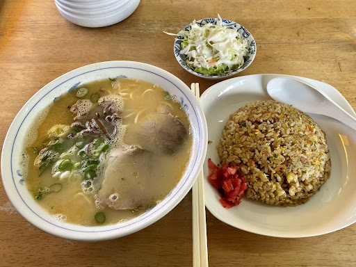 2022年4月16日 昔ながらの大牟田豚骨ラーメンです。 麺は中麺で、スープは豚骨の風味が強すぎない程度にあります。 オーソドックスな豚骨ラーメンで普通に美味いです。 いつもラーメン+焼き飯のAセット(800円)を食べますが、焼き飯は結構美味しいです。 具材がかなり細かくみじん切りされています。 ただ、セットの焼き飯は単品の焼き飯より少しだけ量が少ないです。 高菜焼き飯バージョンのBセットもあります。セットの提供は11:00〜15:00までとなってますが、正直、終日提供して欲しいです。 あとメニューに替え玉はありません。